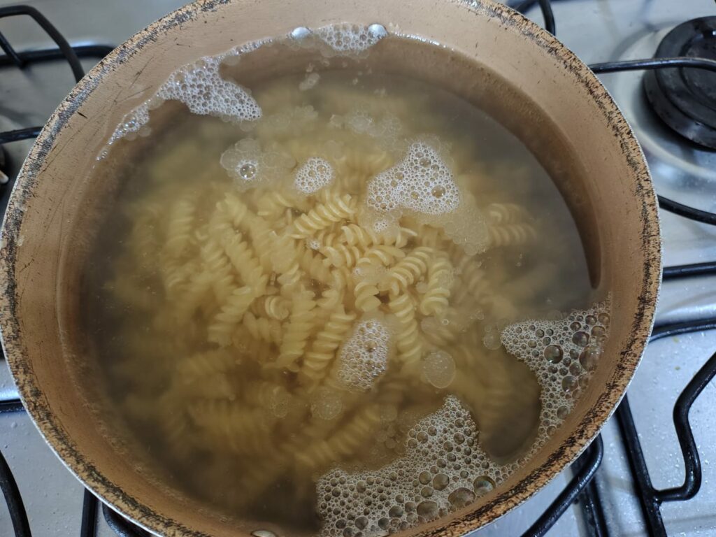 Após a água ferver, acrescente o macarrão;